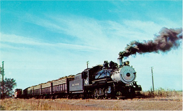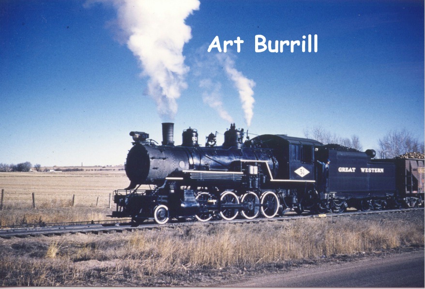 | This is not Art's photo, but it will suffice until I get one of Art's photos of GW #75 online. The 75 was a slightly larger 2-8-0 than 51. It's a star of Hollywood, being numerous movie and TV shows. My personal favorte is "Breakheart Pass" which was filmed on the Camas Prairie Railroad in Idaho. This photo is from the Colorado RR museum collecion. #75 survives today on the Heber Valley railroad in Utah, again hauling tourists, like it's two sisters of Sugar Tramp heritage. |