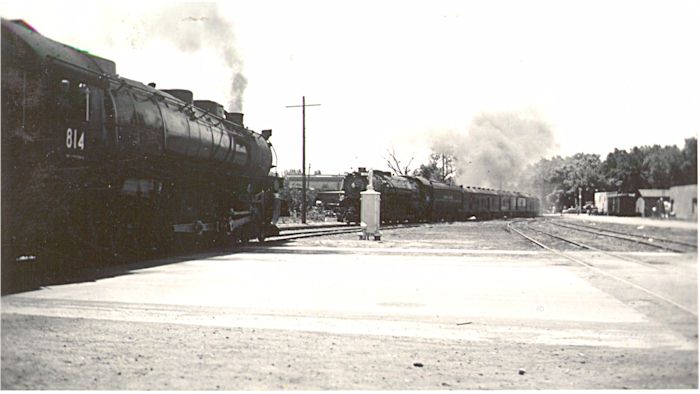 | Here, UP814 and UP817 pass in Ft. Collins, Colorado, on a detour over the Colorado and Southern RR. Colorado. |