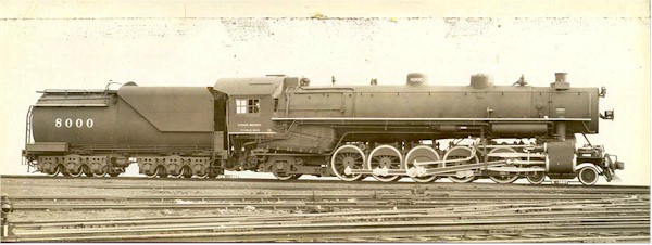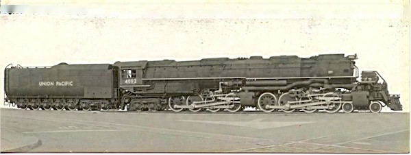 | These are builders photographs of UP4002, which is a Big Boy, UP8000, which is a 4-10-2 and UP9000, one of the three cylindered 4-12-2 locomotives. UP9000 still exists at the Pomona California Fairgrounds. Art had these photographs in his album, but I believe that all three of them were Alco builder's photographs. |