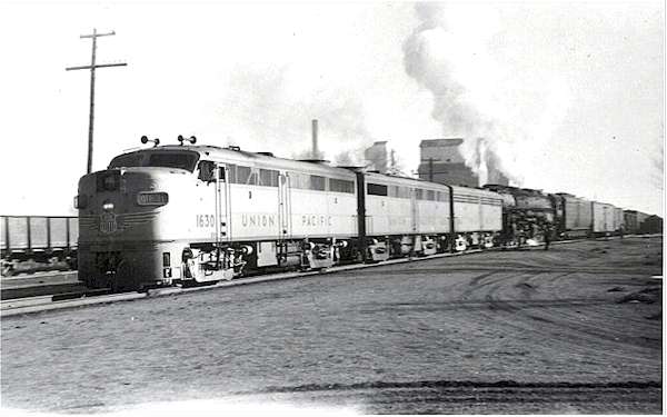 This photo shows an early ALCO Freight diesel set assisting either a Challenger or a Big Boy at LaSalle, Colorado.