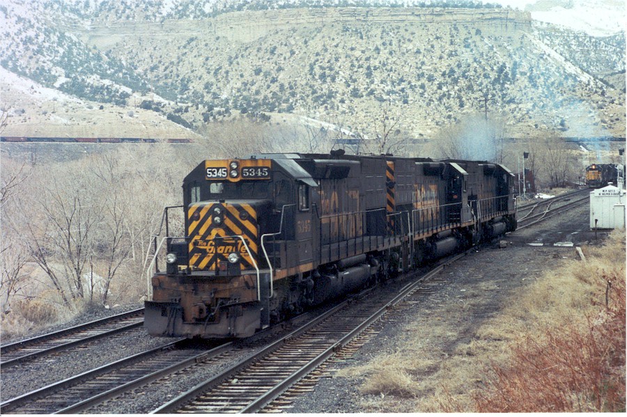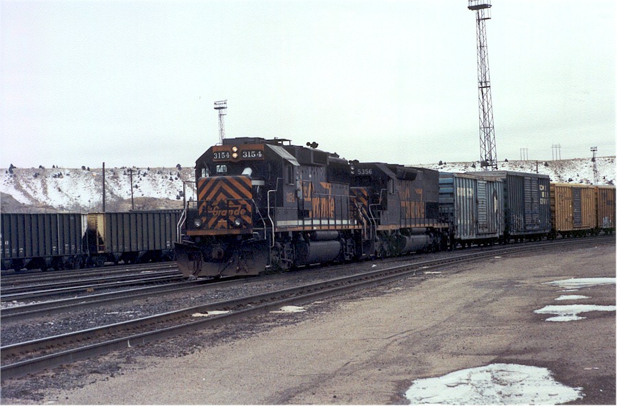 DRGW3154 arrives at Helper with an M-DV-RO train,