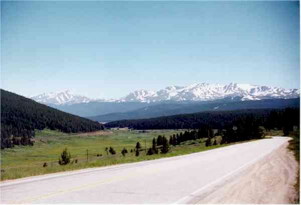 | This next photo shows the beauty of the south side of Tennessee Pass. Mt Elbert, highest point in Colorado, is visible in this photo. The rail line can be seen at the left as well. |