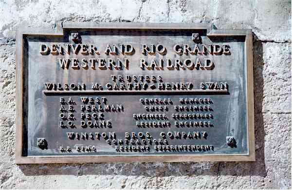 | This plaque was bolted to the south (east) approach to the tunnel at Tennessee Pass until some railfan with sticky fingers lifted it. |